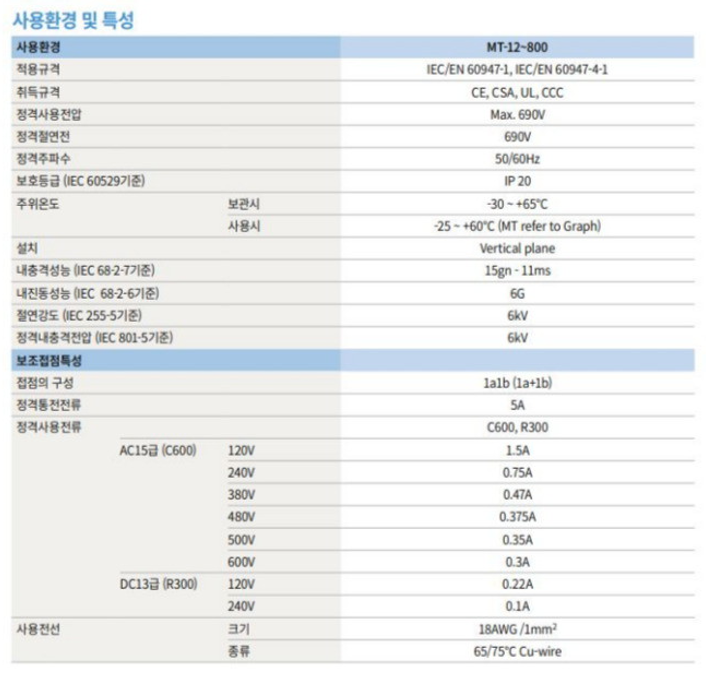 LS ELECTRIC 열동형 과부하 계전기 MT-63/2H 사용환경 및 특성