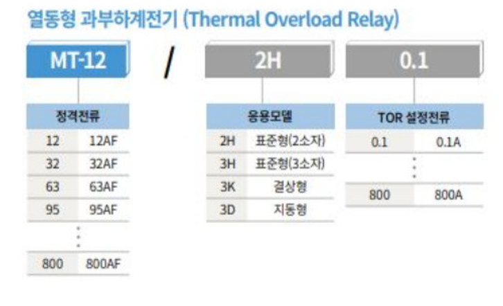 LS ELECTRIC 열동형 과부하 계전기 MT-63/2H 명칭